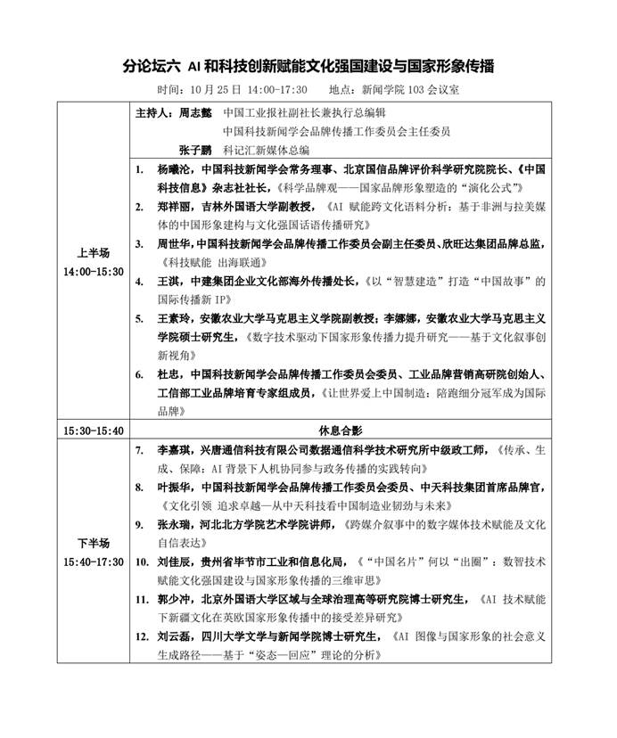 分论坛六 ——“AI 和科技创新赋能文化强国建设与国家形象传播”